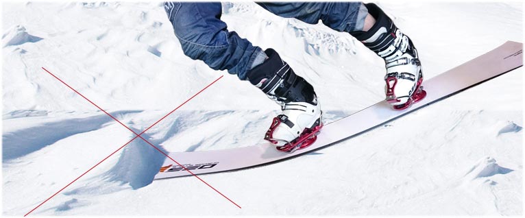 Don’t forget that while riding on soft snow the nose of the board will easily sink into the snow when your body continues inertial movement forward. In this case, you can easily get an injury or break the board.