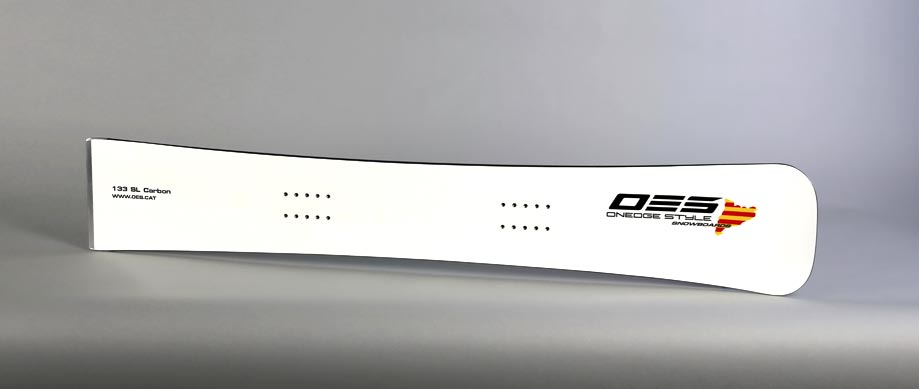 The customary snowboard topsheet is white with OES logo