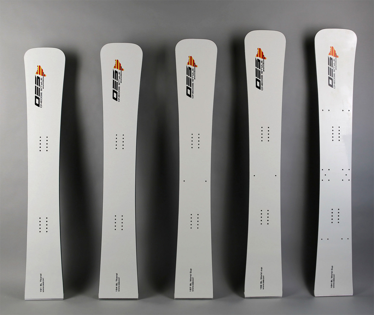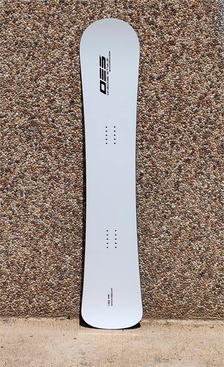 The customary snowboard topsheet is white with OES logo